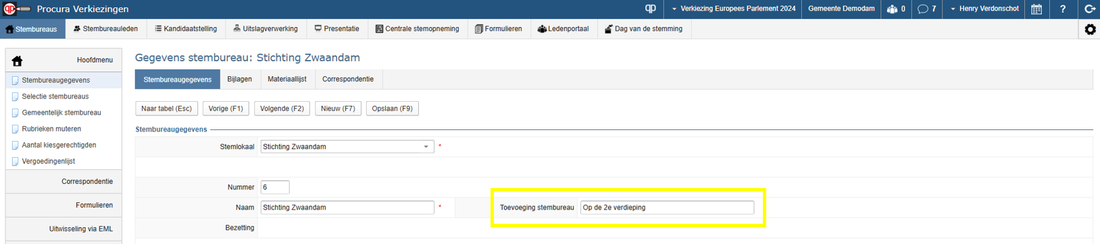 Wilt u een extra informatie opnemen over het stemlokaal, bijvoorbeeld een andere ingang of de locatie van het stemlokaal in het pand, dan kunt u dit aangeven bij 'Toevoeging stembureau'.